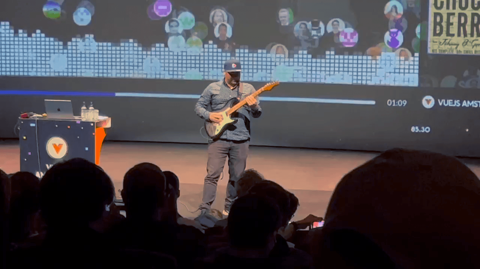 Als grootste engelstalige Vue conferentie trekt VueJS Amsterdam developers uit elke hoek van de wereld aan. De meeste bezoekers hadden er aan het begin van de conferentie dus net een lange reis op zitten. Hierdoor kreeg de eerste spreker de grote verantwoordelijkheid om niet alleen een sterke eerste indruk achter te laten, maar ook om het publiek wakker te schudden. “Challenge accepted” dacht spreker Tim Benniks ongetwijfeld. Hij haalde namelijk alles uit de kast om de jetlag en vermoeidheid van elke aanwezige weg te blazen met zijn talk “Alive and Kicking”. Je kent de term Rockstar Developer wel, zo kan je Tim best omschrijven.