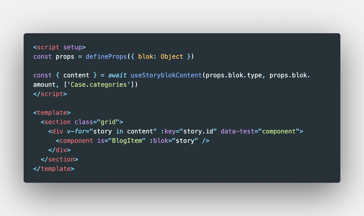 We gaan in dit voorbeeld een lijst component aftesten die onze content uit Storyblok gaat halen voor te tonen op de website. Storyblok is de Cms dat wij gebruiken nu in dit voorbeeld maar dit kon evengoed een api call zijn naar eender waar.
